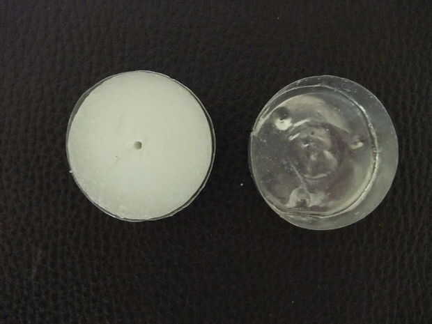 -Escoger la otra bandeja y la tapa a la bandeja con la cera. Pero como ambos las bandejas del mismo tamaño de la bandeja no cabrá en fácilmente. Así, la manera de hacer esto es hacer la bandeja que contiene la cera más pequeño engatillando un poco. Ahora, debería poder tapa de la bandeja.