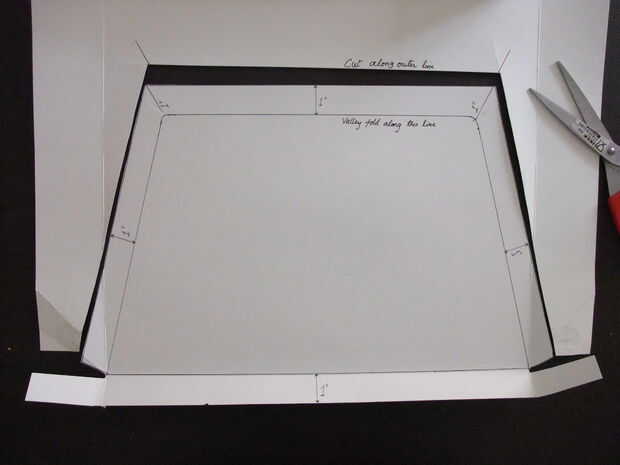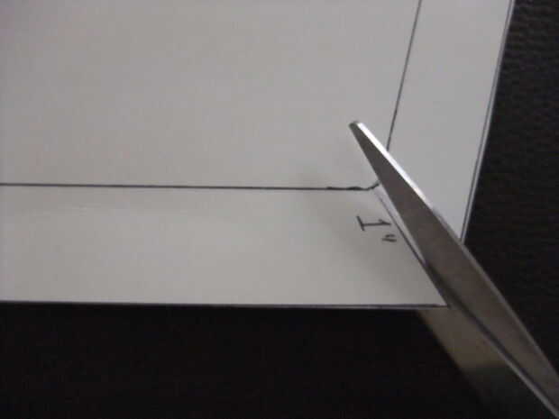 -Coloque a un lado el cartón de pie y cortar el cartón base la línea exterior