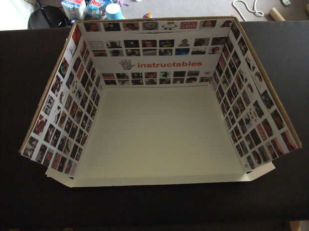 -Alejar las aletas laterales del cartón de pie un poco para que widnen la arena. Ahora debe mirar como un trapecio/trapecio
