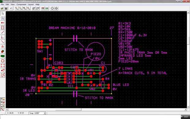 El dispositivo escaneará el ojo cerrado usando infrarrojo y cuando el movimiento es detected(REM) el microcontrolador PIC parpadeará un LED y producir un sonido en un piezo. Esto debe despertar uno en un sueño. Útil para sueños lúcidos o si uno quiere mejorar su memoria de sueño. He encontrado con este dispositivo, mi memoria de sueño ha mejorado mucho.