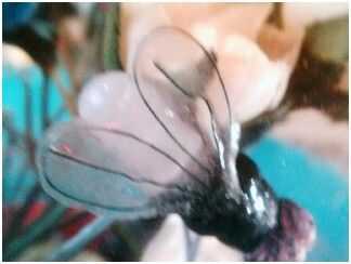 me gusta hacer LEDs de artículos baratos de la tienda de $1. Deje los cables largos. Tomar una pinza de nariz de aguja y doble las puntas de 90 grados como se muestra. Luego doblar el extremo del cable en un anillo para sujetar el tallo de la flor en que se sienta, puedes soldar un alambre fino a cada cable o prensar sólo un alambre en el anillo que hiciste. Ejecutar los cables para la energía hacia abajo el tallo. Usé una arcilla termal para hacer el cuerpo negro y rojo brillo pintura para sus ojos. Usé alambre fino para formar las alas y el plástico de curación UV a rellenar las alas claras. No desea el LED de calor demasiado, así que utilicé una pistola de calor para fijar el cuerpo. Para darle la luciérnaga un aspecto más real, sumergió el LED en mi plástico UV y luego en polvo de polímero a la helada lo.