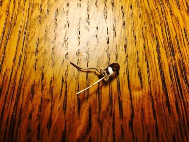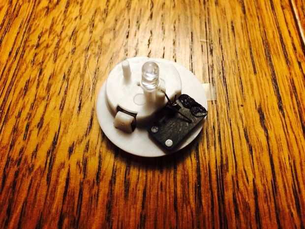 Una vez la tapa, echemos un vistazo a lo que el LED se encuentra en su soporte. El plomo del cátodo desciende y está doblado en un ángulo de 90 grados en el compartimento de la batería. El ánodo o positivo del LED se encuentra dentro del luz encima del interruptor del té. En la posición de apagado el plomo del ánodo no toque el interruptor, pero lo hará en la posición ON. Sé, decir lo obvio, pero será necesario replicar este arreglo con el alambre un poco después.