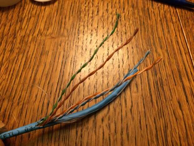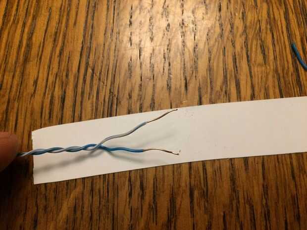Pele aproximadamente una pulgada de aislamiento de un par de cables. Deje los cables torcidos.