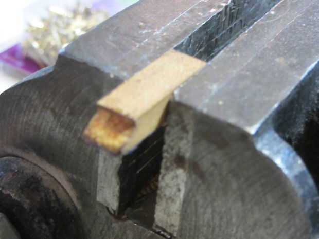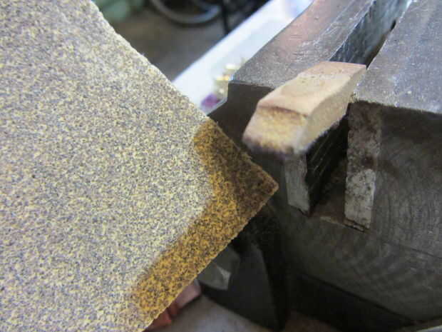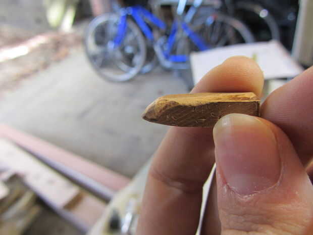 A continuación, sujetando la madera con las pinzas al final en que solo estaba trabajando pulir la madera en el lado sin tocar hasta llegar a una bala con forma de pieza de madera de 1/2" de largo (la misma longitud que el diámetro). Luego, lije los bordes una vez más hasta llegar a una forma esférica.