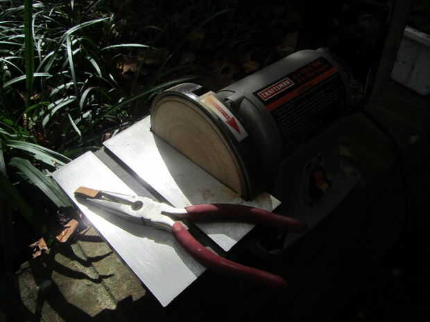 Si está usando una lijadora de mesa: Si usted es la suerte de poseer una de estas máquinas encantadoras, te aconsejo que sujete el extremo de la pieza de madera en un par de pinzas. Se trata de trabajos delicados, y no desea arriesgar los dedos que cierran el disco lija! Usando el disco plano de la lijadora, comience a lijar lejos en los bordes hasta llegar a un final más o menos hemisférica.