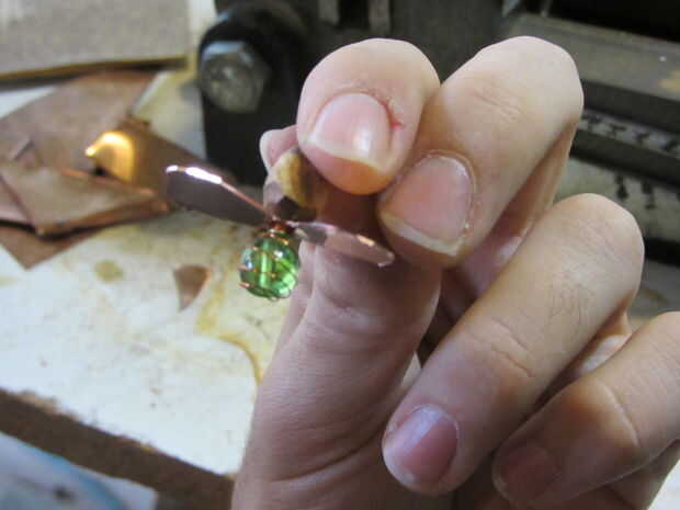 -Las piernas. Esto puede hacerse envolviendo unos 3/4" del alambre y envolver alrededor del punto de fijación de las alas a la cabeza, luego doblar los laterales hacia fuera y hacia abajo. Repite tres veces, esto le dará un adecuado seis patas.
