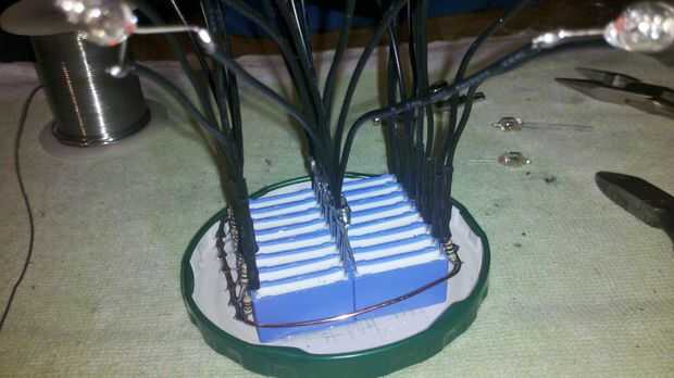 yo estaba completamente sorprendido por el projekt de la meenzai del usuario y sus luciérnagas este gran proyecto me inspira a una versión punk de vapor.Usé el mismo circuito 20 veces y cableados junto con algunos materiales steampunkisch como un med