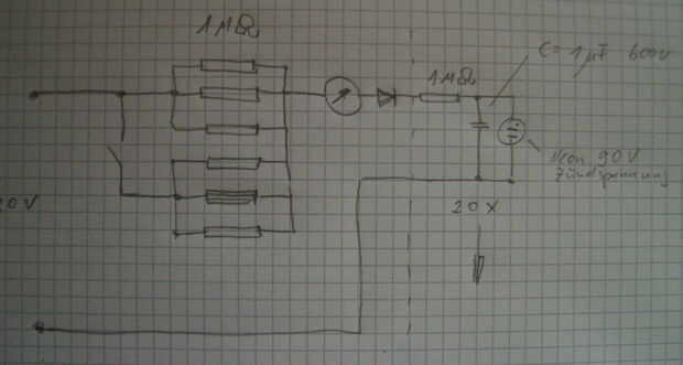 La combinación de R/C con la bombilla de neón.