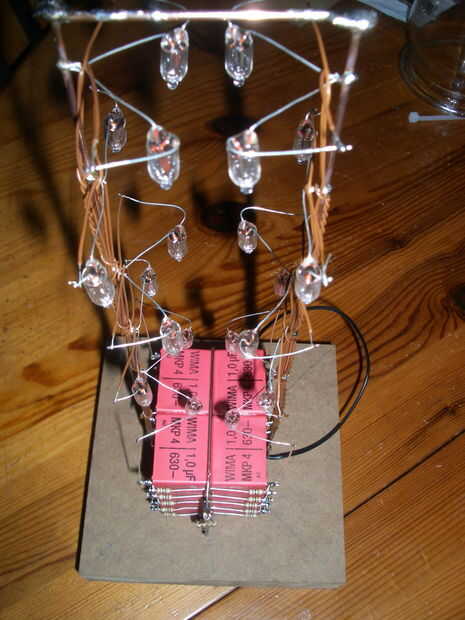 Usé los alambres de cobre gruesos para construir el conector común de los bulbos.