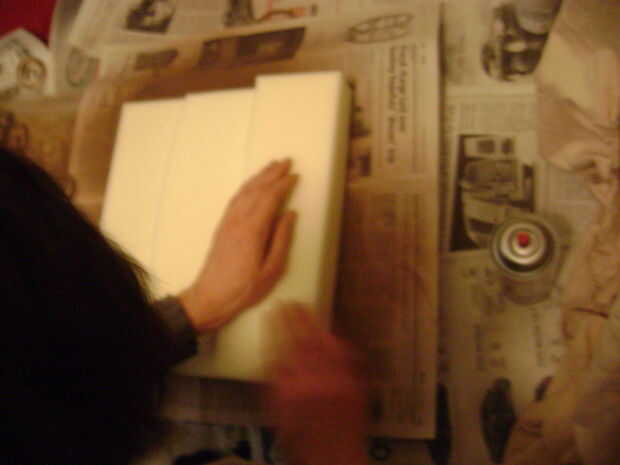 Cortar la espuma de tapicería y pegan tres capas para darle Ludo un agradable acolchado trasero y caderas. Con una aguja de tapicería curvo grande sutura la espuma a mano a los pantalones.