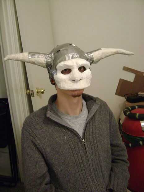 Coloque la cara y los cuernos a la tuque con la ayuda de una pegamento pistola y cinta adhesiva.