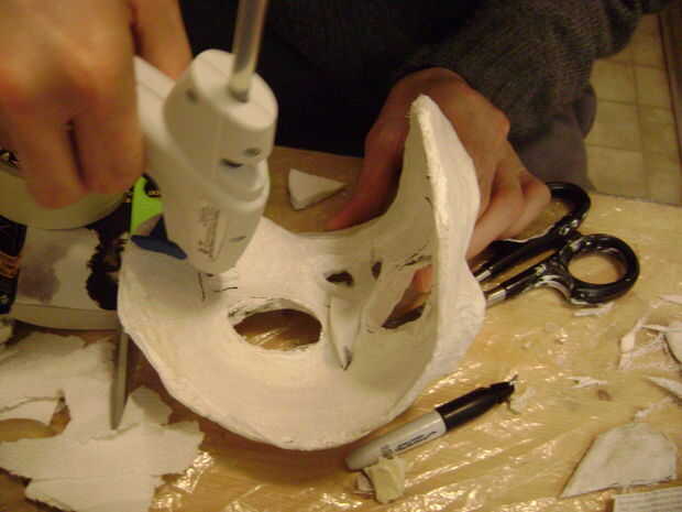 Cortar el maquillaje esponjas en pedazos más finos y usarlos para rellenar el interior de la máscara.