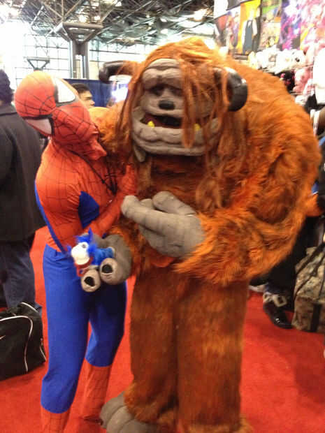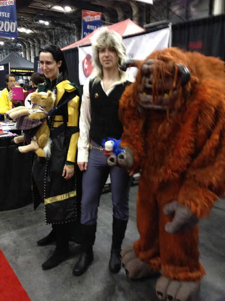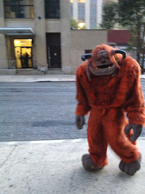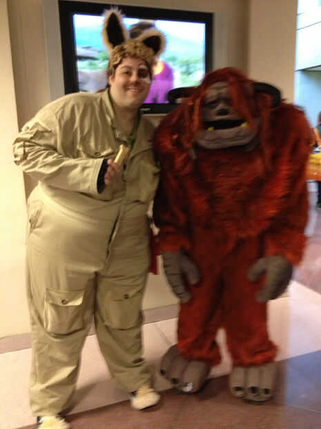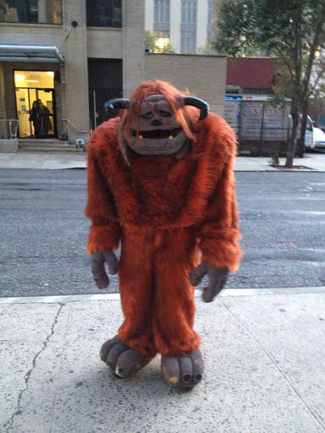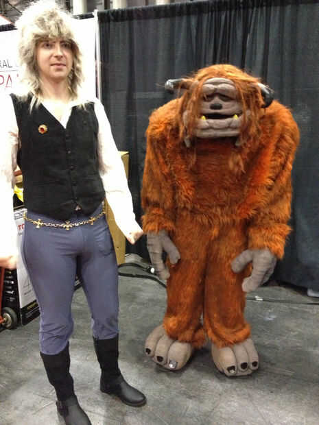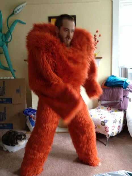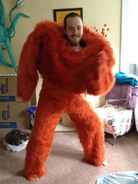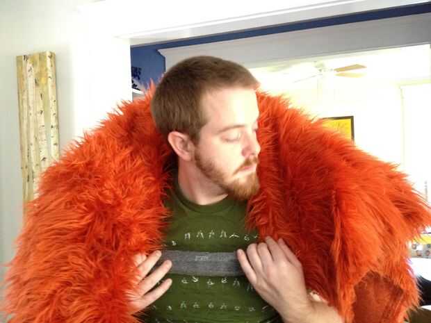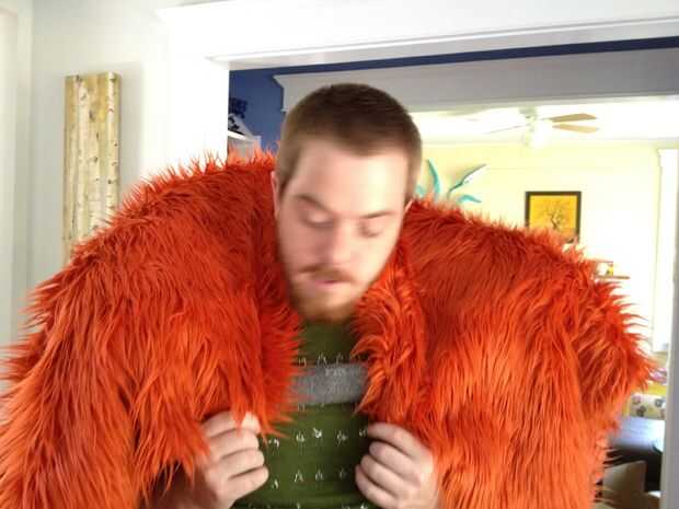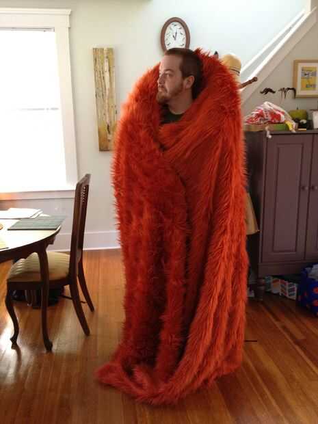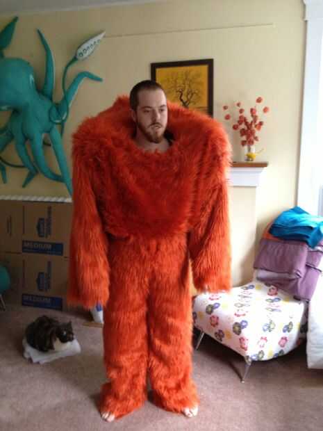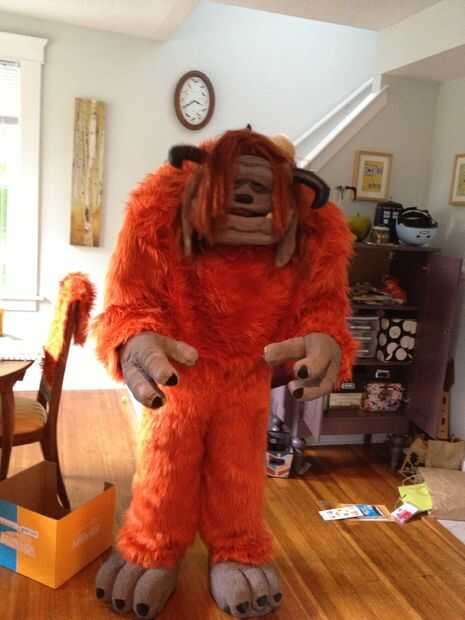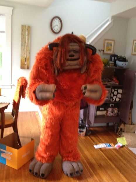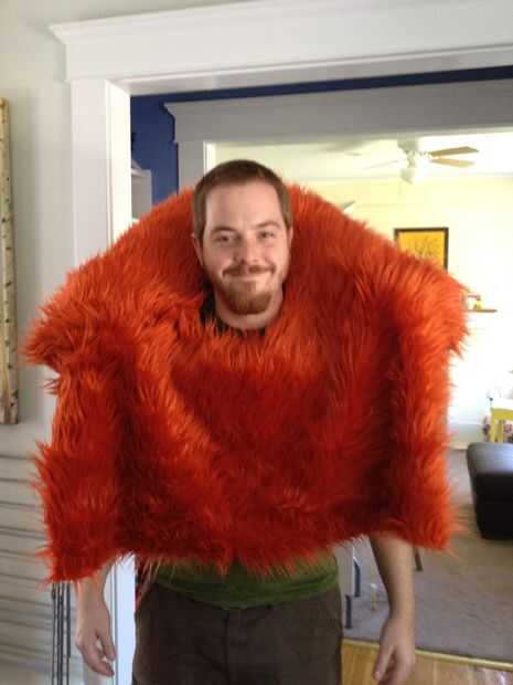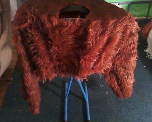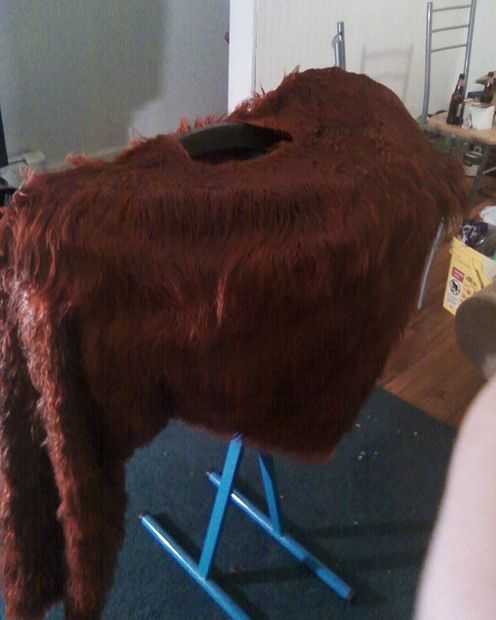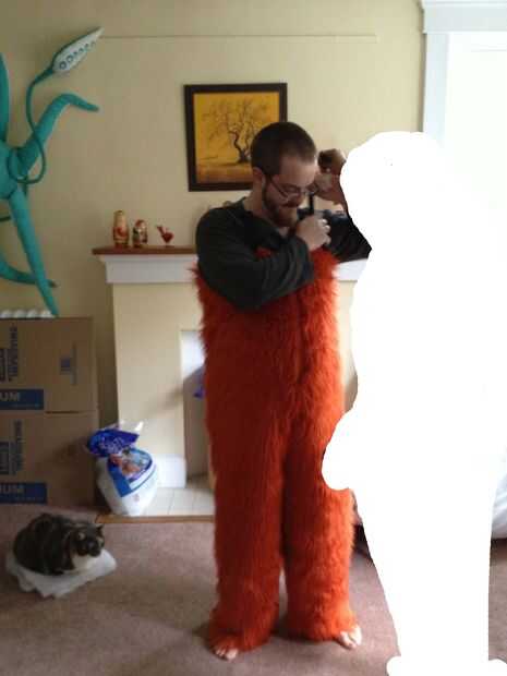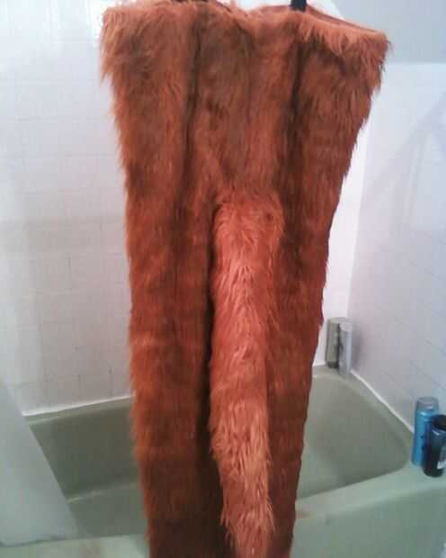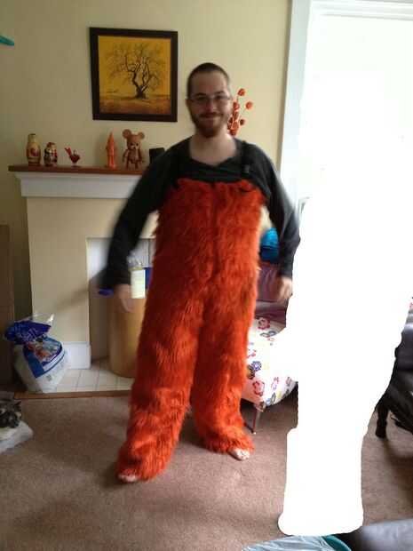 Para la parte superior del cuerpo, había cubierto de la piel sobre la estructura del hombro, con un agujero en el centro para la cabeza de Chris y utiliza dardos y costuras para formar. Después de agregar generosamente los brazos, tuvimos un top blusas de piel sexy gigante! Para crear los pantalones que usa un patrón de pantalones de pijama para obtener el bagginess quería y había añadido longitud hasta el extremo superior para que los pantalones comienzan aproximadamente a la altura del pecho. Ponemos una cremallera en el frente "facilita" el acceso baño emergencia. Los tirantes, de hebillas fleje y paracaídas de nylon, permiten ajustes de longitud infinita. Voila! Fue muy divertido trabajar en este proyecto con Chris. Aprender a cortar y coser la piel del faux era impresionante, y sin duda en el futuro utilizará para mis criaturas de peluche! Y también hice una barba de gnomo super con los restos! : D