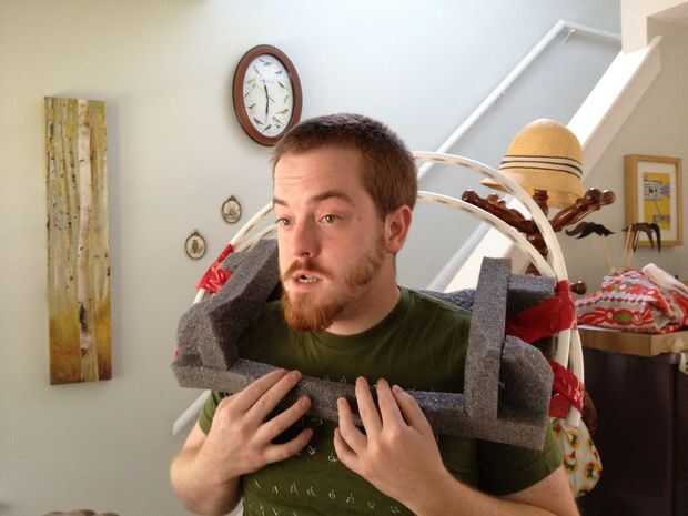Para parecer más alto y más jorobada que soy naturalmente, hice un hombro pedazo de algunos envases de espuma extraña me encontré con que perfectamente cabe mis hombros y algunos redondearon tubos de plástico, aro del hula esk. He utilizado un montón de cinta adhesiva y algunos bloques de espuma extra para solidificar la forma