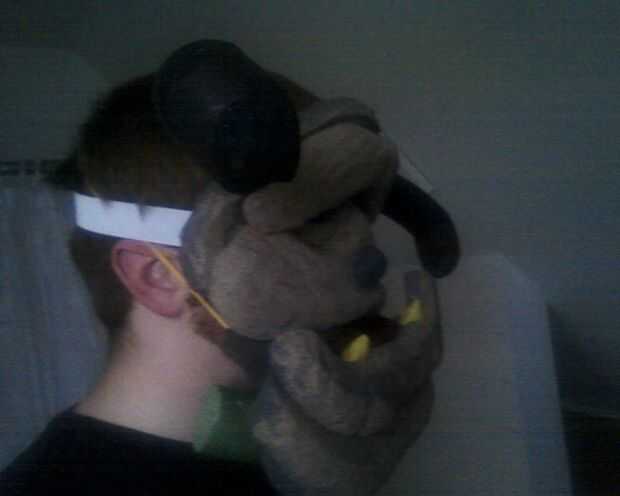 La barbilla utiliza un método similar de capas de espuma para obtener la forma correcta, luego colocar una cadena a través de la parte interior de la barbilla hacia arriba y alrededor de mi cabeza que mi barbilla se apoye en la parte posterior de la boca. La cadena es un poco apretada en la parte superior de mi cabeza para permitir el movimiento con el movimiento de mi boca.