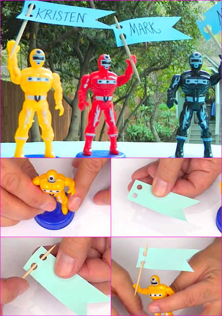 Crear banderas con cartulina y palillos de dientes caliente pegamento en cada mano