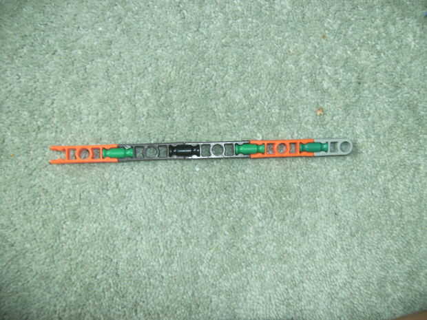 4) barras de usar blanco, connect todas las piezas como se muestra, sin olvidar las barras verdes en los agujeros. Utilice cinta para envolver alrededor de las partes, atrapando las barras verdes en y mantiene juntos la mag. Nota que al final de la revista de los dos lados largos son pegados juntas, esto evita que las balas deslizarse hacia fuera cuando su en el bolsillo o donde quiera. 8 varillas pequeñas caben en esta mag.