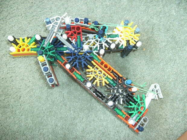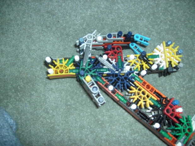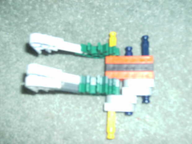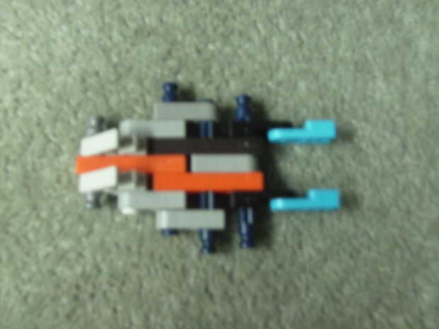 4) Conecte la parte 1 sobre la barra azul., luego coloque los conectores de ángulo agudos sobre la barra blanca de la segunda pieza.