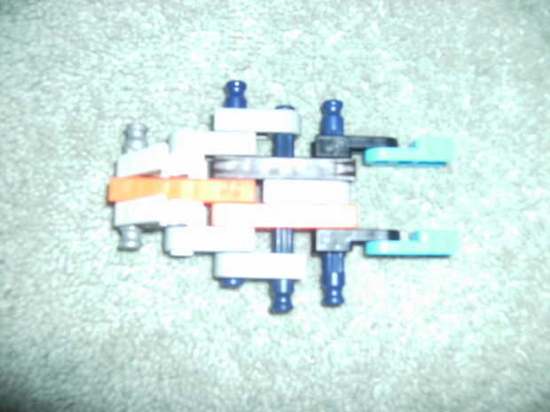 5) conectar las piezas de la bisagra en la varilla del gatillo azul.