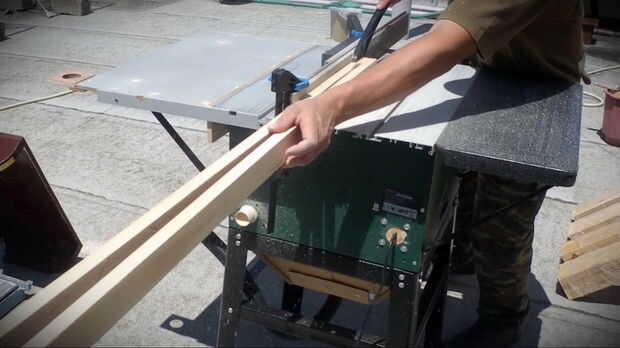 Ahora algunas vigas cortadas por la mitad, a usarlas entre los postes, por lo que puede estabilizar la pared posterior.