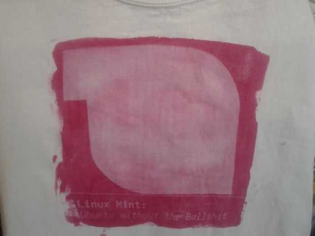 Por lo tanto, he aquí mi gran creación, el logo de Linux Mint camiseta, ahora con el lema añadido actitud!