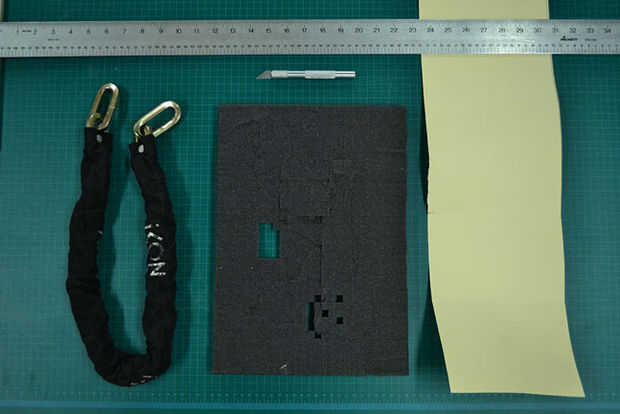 1. en primer lugar se necesita algunos materiales para hacer el patrón para la correa de hombro, esta correa será una cubierta por tu cerradura de cadena.