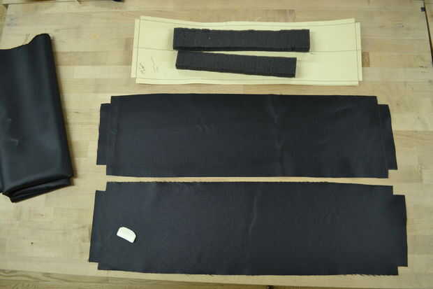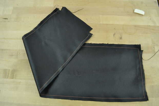 7. planchar a la tela cortada y asegúrese de que las aletas líneas discontinuas para la costura más fácil de planchar.