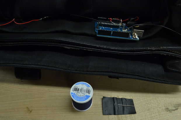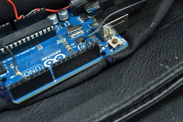 10. Coloque el Arduino en un bolsillo si está disponible o coser cuidadosamente en el lado de la bolsa (si es posible)