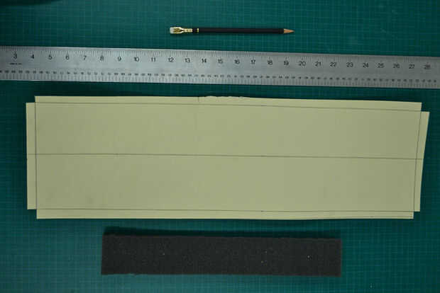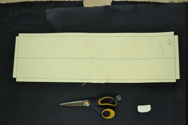 a) tienen un gran tamaño formato papel grueso, tijeras (papel de cartel funciona mejor), regla, rotulador de la tela y un lápiz