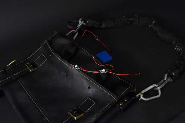 14. después de instalar este ahora puede enfocar rápidamente el lijado hacia abajo las conexiones entre la bolsa y cadena. Si metal conductor usted no tiene que preocuparse por este paso.