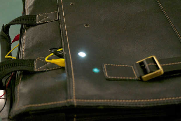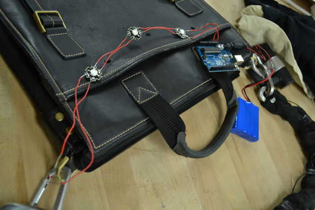 11. Asegúrese que la batería es conectada al Arduino y cosida en el interior de la bolsa o colocada en una cavidad existente.