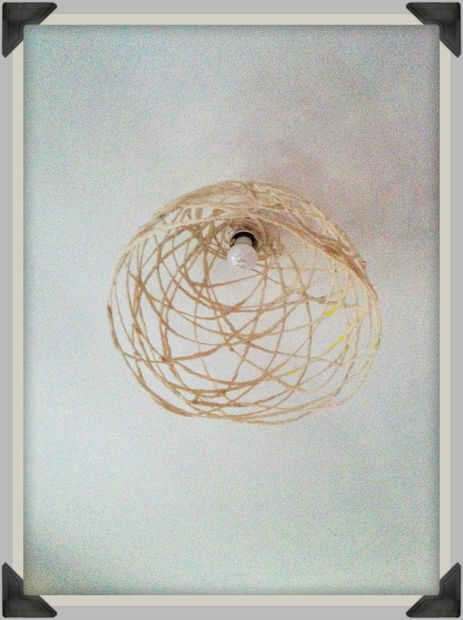 hacer una diseño de calidad cadena colgante lámpara en su los propios con algunas ganchillo hilo, un globo y tela de refuerzo. Hace un poco un lío, toma un día para secarse, pero se ve genial, es infinitamente más barato que comprar uno de Design Wi