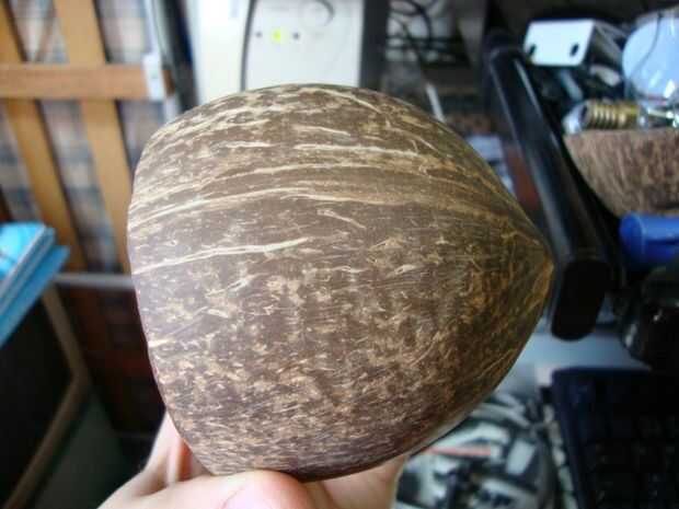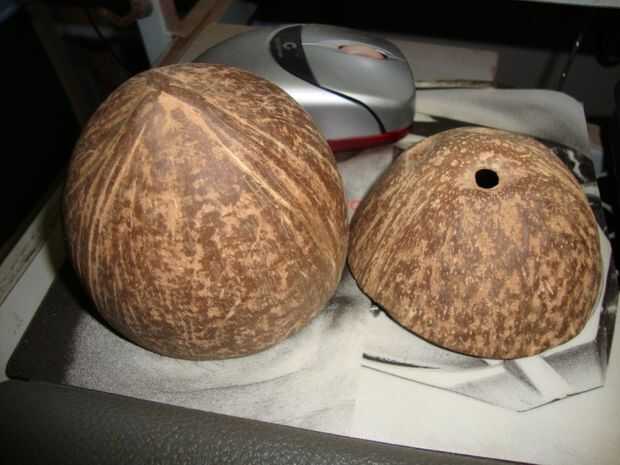 Primero viene la materia prima para el proyecto: el coco! Abrí con una sierra y lija la superficie hasta que quede suave al tacto.