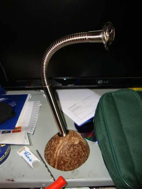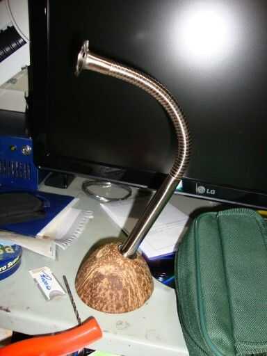 Encontré una lámpara barata ($ 10,00) y compró para su reutilización. Anteriormente había pensado usar para un bambú - teniendo la ventaja de ser hueco por dentro y permitir el paso de los cables.