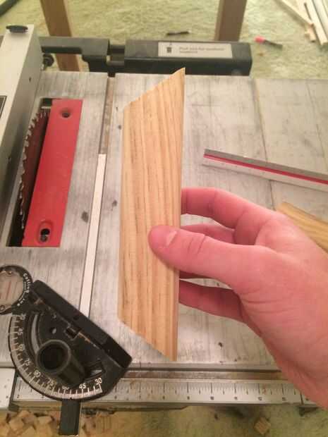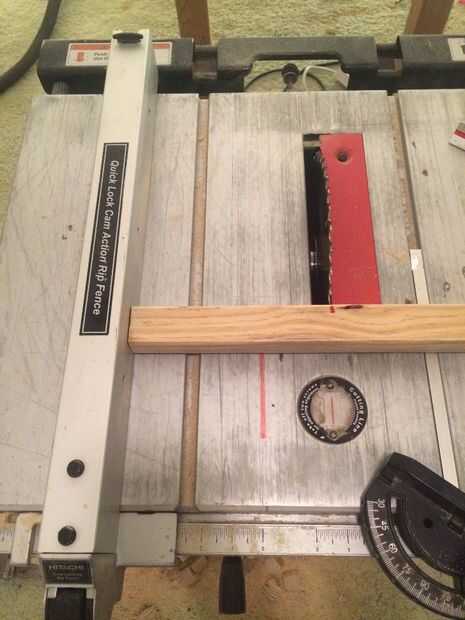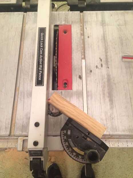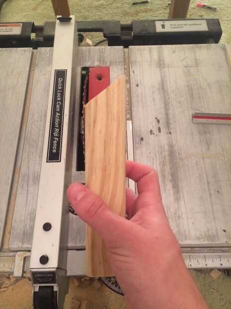 Ahora que yo sabía que necesitaba 7" pedazos, puse la valla en mi sierra de mesa 7" además de una anchura de hoja (que varía dependiendo de la hoja) para que tuviera exactamente 7" de madera. Quisiera cortar un tablero entero y marcar los cinco pedazos de modo que guardé las piezas juntas en un grupo. Esto resultó útil debido a los diferentes tamaños de los tableros. Después de cortar varias placas hasta grupos de 5, giré a mi guía a 54 grados y restablecer mi valla para que la esquina de la madera fue directamente en la hoja. También he hecho seguro de que las tablas fueron cortadas en el mismo lado, piezas serían más altas que otros. Corte 1 parte de 5 piezas y luego les volteadas y cortar los otros lados para asegurarse de que cortar correctamente los ángulos. Después de este paso tuve 60 pedazos de aprox. 7" cortan piezas de madera con 54 grados en ambos lados.