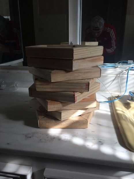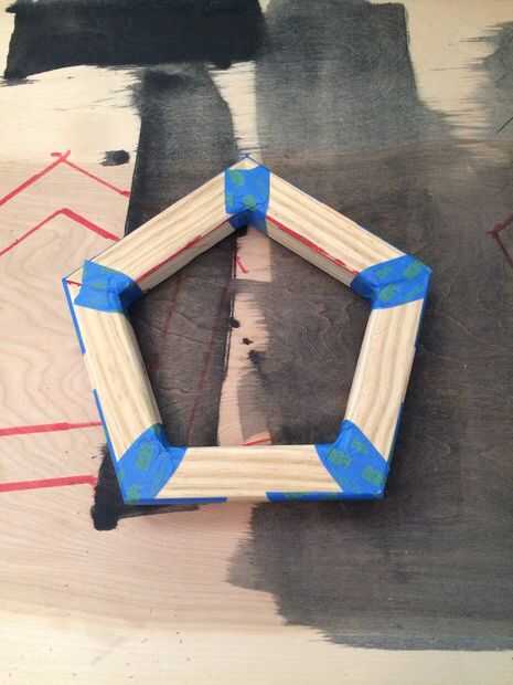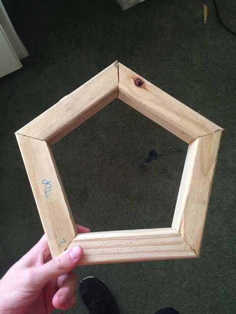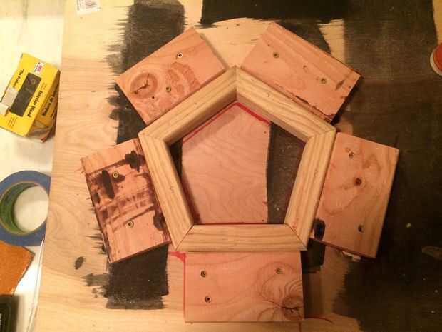 Para construir mi jig encontré el grupo de más de 5 piezas y grabados en un Pentágono. Entonces tomé un 2 "x 4' y cortar hasta 6" piezas, (yo usé 6" para que el solape no interrumpir las esquinas del Pentágono, como se puede ver en las fotos.) Atornillada las plantillas con tornillos lo suficiente para ir a través de la 2 "x 4' y la placa base trabajé de en cuanto a no rayar la cubierta. Me aseguré de no a atornillar los tornillos completamente por lo que puede quitar fácilmente para cuando cambié pentágonos después de pegado. Finalmente hice una segunda plantilla por lo que pude pegar dos veces tantos pentágonos a la vez.