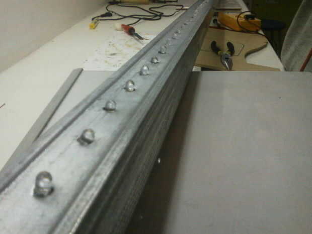 Si usted tiene por ejemplo 50 LEDS, haces 50 agujeros y después de que cortamos el exceso de la pieza