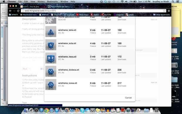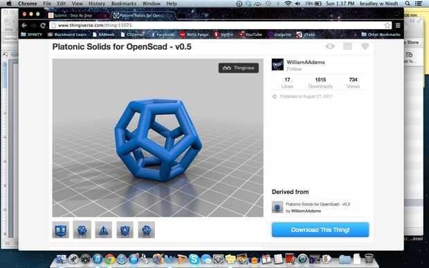 Haga clic en el enlace, "Descargar esta cosa!" y descargar el sólido platónico de su elección. Como he dicho antes, en este instructable voy destacan cómo hacer una lámpara de bicicleta de hexaedro.