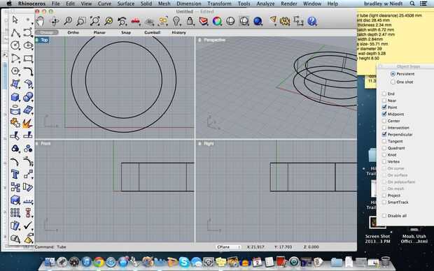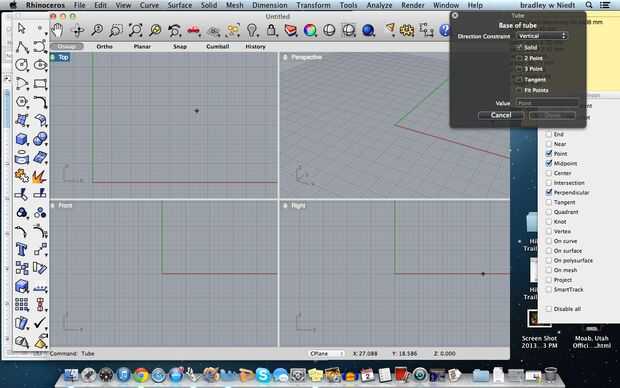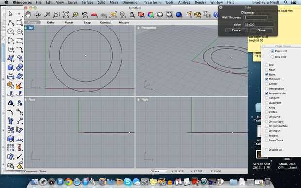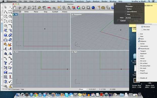 En rhino, tipo "tubo" y pulse enter. El programa pedirá especificar el centro del punto, así que haga clic en medio de la vista superior, y el punto central será set(image1).