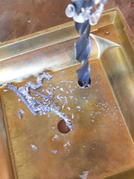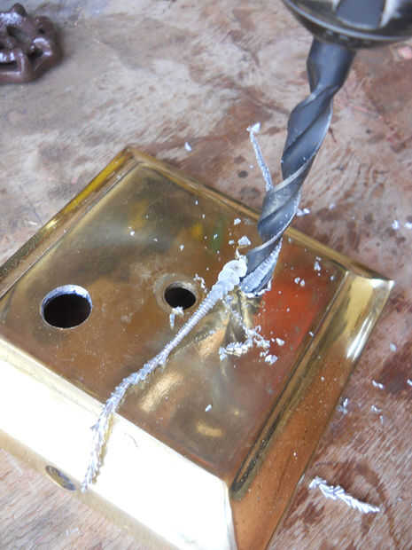 La base original sólo tenía un agujero en el centro, y para mi diseño, necesitaba un agujero para el brazo de la lámpara y uno para el interruptor.