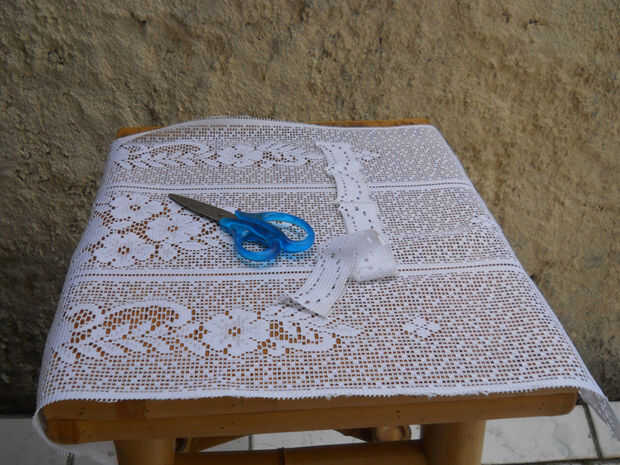 Para dar la sombra algunos añadió flare, corte una pequeña sección del cordón de una cortina y cosidos a la pantalla, con un poco de cinta adhesiva para sostenerlo en lugar. (Si se recorta cortinas de su madre en la ley, no deje que le captura ;-)