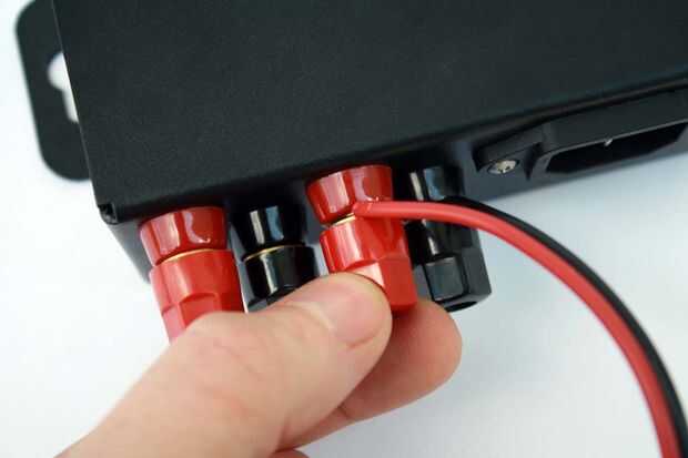 Aquí utilizamos la MakersLED energía de la fuente cubierta con una fuente de alimentación de 48V rápido sin herramientas vinculante post de conexiones (y con seguridad para la conexión de alimentación de 110V).