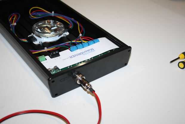 Idea de mejora: el conector de 2 pines panel de 1/2" en la tapa de extremo podría ser intercambiado hacia fuera con un puesto de enlace para una conexión infalible a la fuente de alimentación.