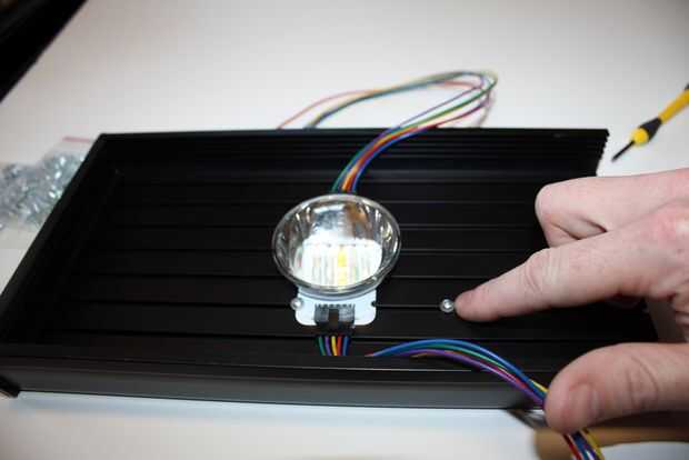 Paso 4: Diapositiva 4 tornillos + tuercas hasta el módulo de LED de 70W y apriete bien para crear una sólida conexión térmica al disipador térmico.