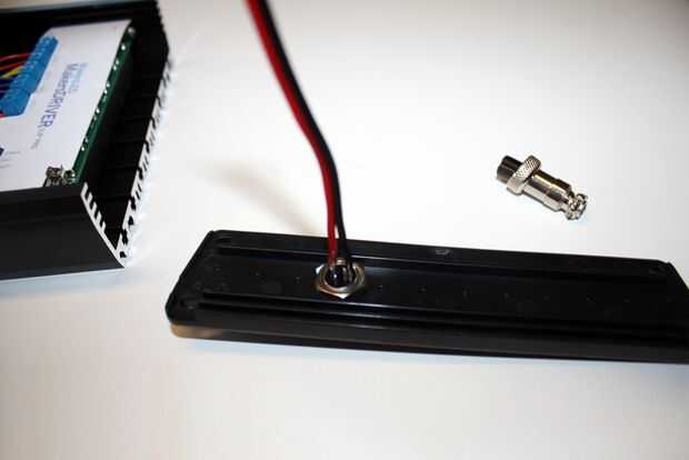 Este conector es donde entrará en la alimentación de 48V en el luminario de LED y alimentación el controlador de LED MakersDRIVER.