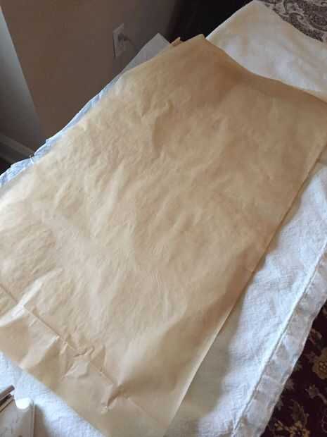 Cubrir el sándwich de plástico/pasador toda con ese pedazo de pergamino para proteger el hierro y no se funde a través de la plástica.