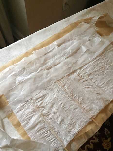 El lado escoges será parte en el proyecto final. Tome las partes restantes de la bolsa o algunos nuevos bolsos y cortar en tiras de media pulgada que se ajuste horizontalmente en el sándwich de taco plástico de totalidad. Si le gustaría jugar con elementos más coloridos de la bolsa en este paso, sea mi huésped. Voy a pegar con el blanco. Imperfección es fundamental aquí porque las tiras de crean textura.