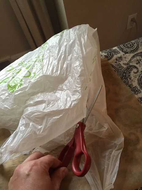 me gusta usar las piezas sin impresión de la bolsa para este proyecto, simplemente corte a lo largo de la "costura" de la bolsa. Estoy usando algunos bolsos de mi tienda local de comestibles. Prometo usar mis bolsas reutilizables la próxima vez.