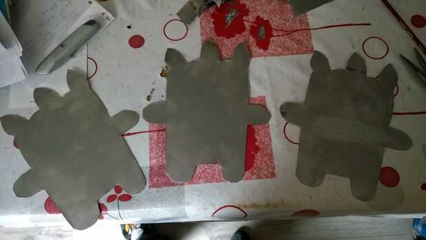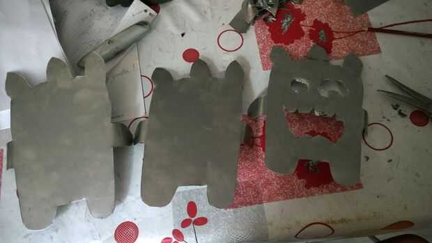 Dibujo la forma del monstruo, cortó una y uso tiene un patrón para cortar otros.