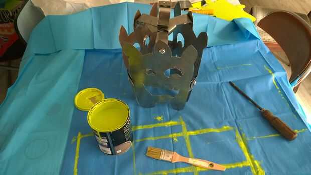 necesitaba algunas luminarias para tomar un par de PAR38s azul que yo tenía por ahí.Aquí utilizamos algunas latas de café para proteger los bulbos, ya no tiene que preocuparse acerca de geles (que ya están coloreados) o lentes (que ya están enfocadas